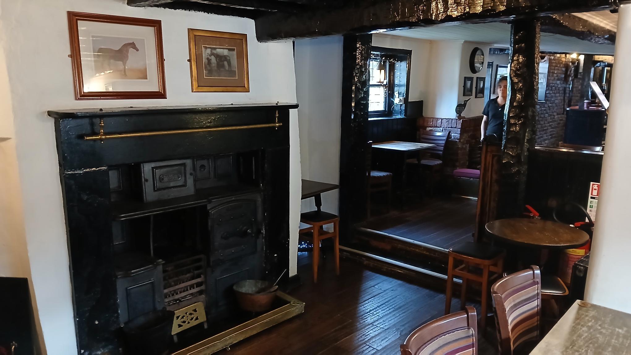 Main Bar – 5.163m x 3.955m – Mixture of wood and carpeted flooring, exposed beam work and exposed brick fireplace.